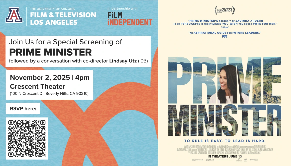 Join us for an exclusive theatrical screening of PRIME MINISTER, followed by an in-person Q&A with UA alum director Lindsay Utz ('03).